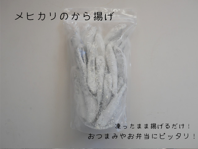 | おすすめ調理法 | 簡単!袋から出して凍ったまま油で揚げたら出来上がり! 揚げたメヒカリを南蛮漬けにするのもおすすめ! |