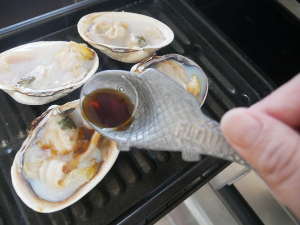 ③強火で熱しておいた魚焼きグリルに大アサリを入れて3分タイマーかける