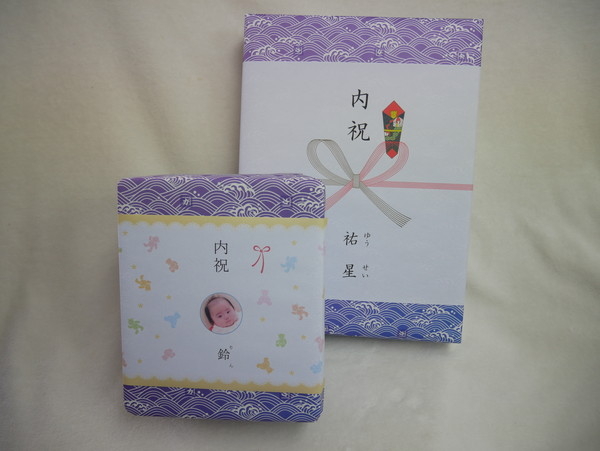 熨斗サービス(内祝いの場合はお子様の顔写真付き熨斗)、弊社オリジナル包装紙にて梱包可能です。熨斗の有無や内容は通信欄にご記入ください。