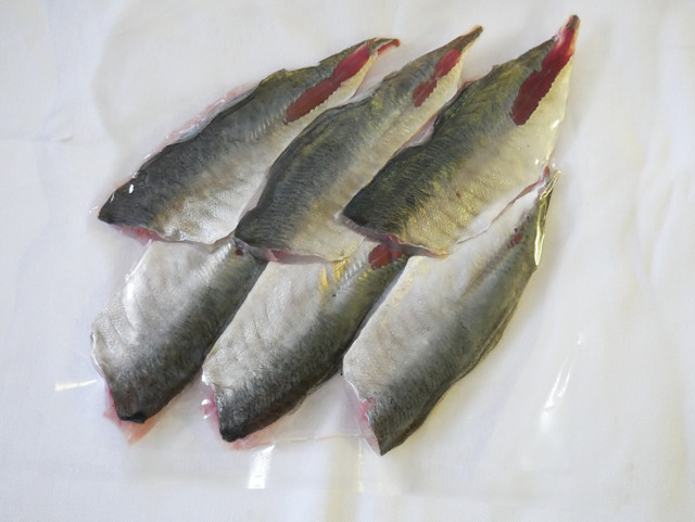 国産のアジを新鮮なうちに3枚おろしをして((((骨を抜いて)))) 真空パック包装いたしました。