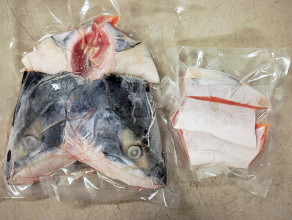 通常の秋鮭に比べて、旨味も価格も3倍以上と言われている時鮭(トキシラズ)のカマやアラを鮮度のいいうちに真空パックし急速冷凍いたしました。