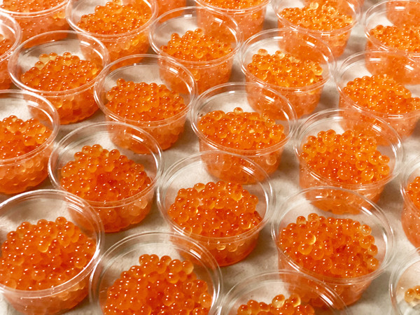 そんな生鮭の筋子で作るイクラはシンプルに天日塩と純米清酒料理酒と水のみで作っています。冷蔵解凍後、そのままお召し上がりください。お好みで食べる直前にお醤油をひとかけしてもOK!です。