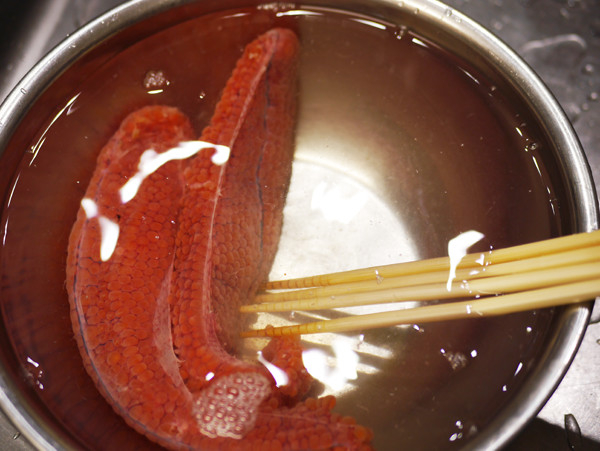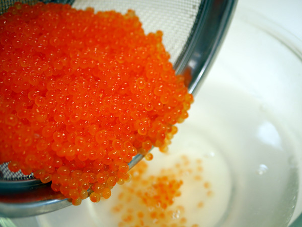 国産天然の生鮭から取れる「筋子」で自家製イクラを作りました。